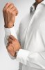 Vyštíhlený střih SLIM kopíruje pánskou siluetu a je tak ideální pro štíhlé a standardní postavy. Nadčasový design je doplněn univerzální manžetou, kterou lze snadno zapnout na klasický knoflík nebo ozvláštnit manžetovými knoflíčky pro slavnostnější příležitosti.