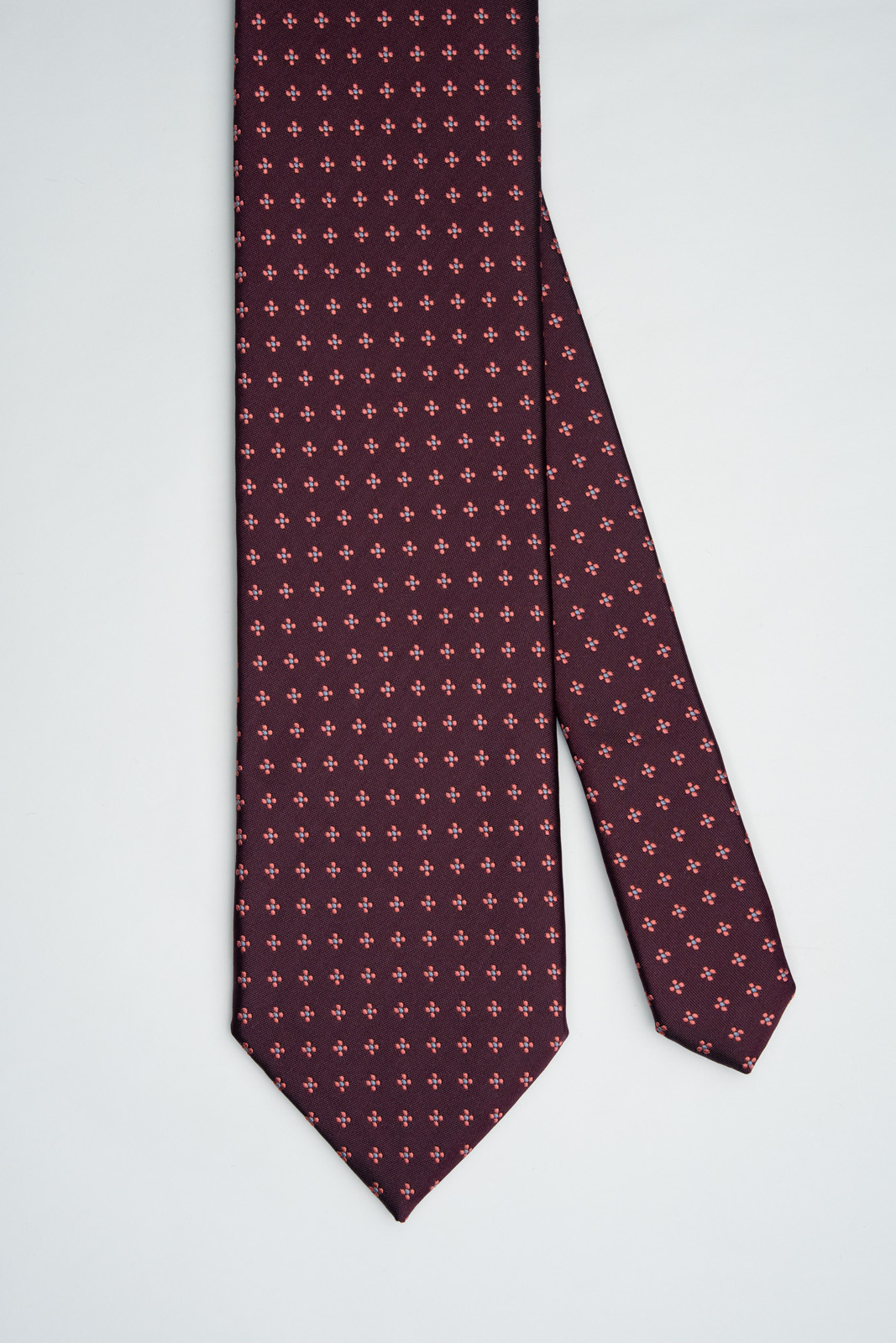 Drobný pravidelný vzor působí elegantně a nenápadně, díky čemuž je kravata ideální volbou pro každodenní nošení i slavnostnější příležitosti.