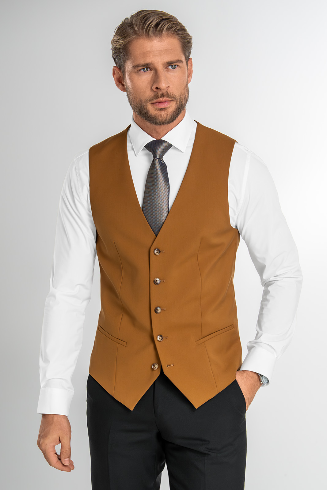 Společenská i volnočasová vesta v moderním střihu SLIM zvýrazní mužné rysy vaší postavy a podtrhne váš elegantní vzhled. Vždy se v ní budete cítit příjemně a pohodlně.