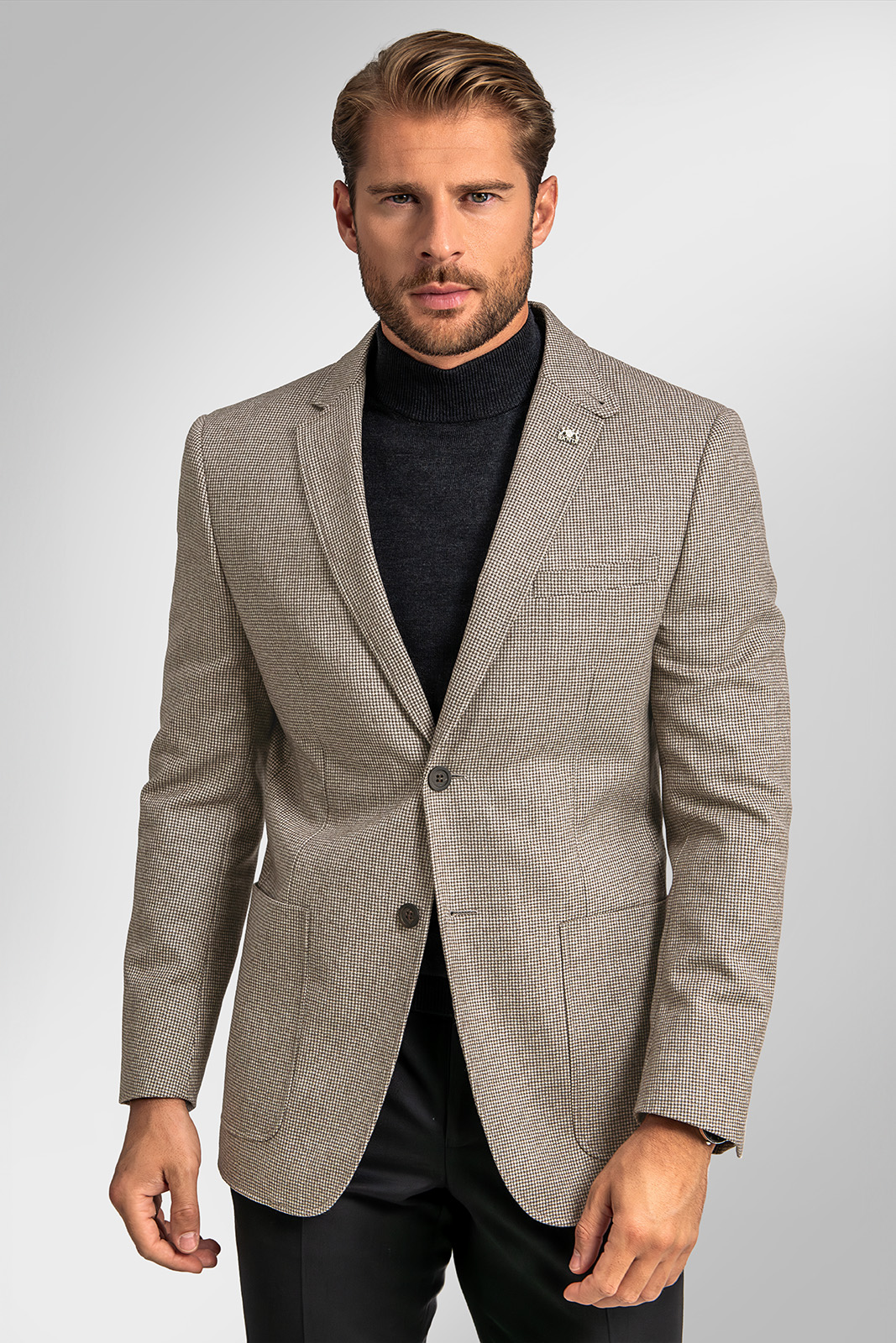 další informaceDecentní vzor kohoutí stopy v kombinaci s nakládanými kapsami, ozdobným prošitím a originálně řešenou klopou dodává saku osobitý charakter. Světlý odstín působí svěže a výborně se kombinuje s dalšími prvky volnočasového šatníku – skvěle ladí s chinos kalhotami, tmavšími džínami i svetrem v tlumených tónech.