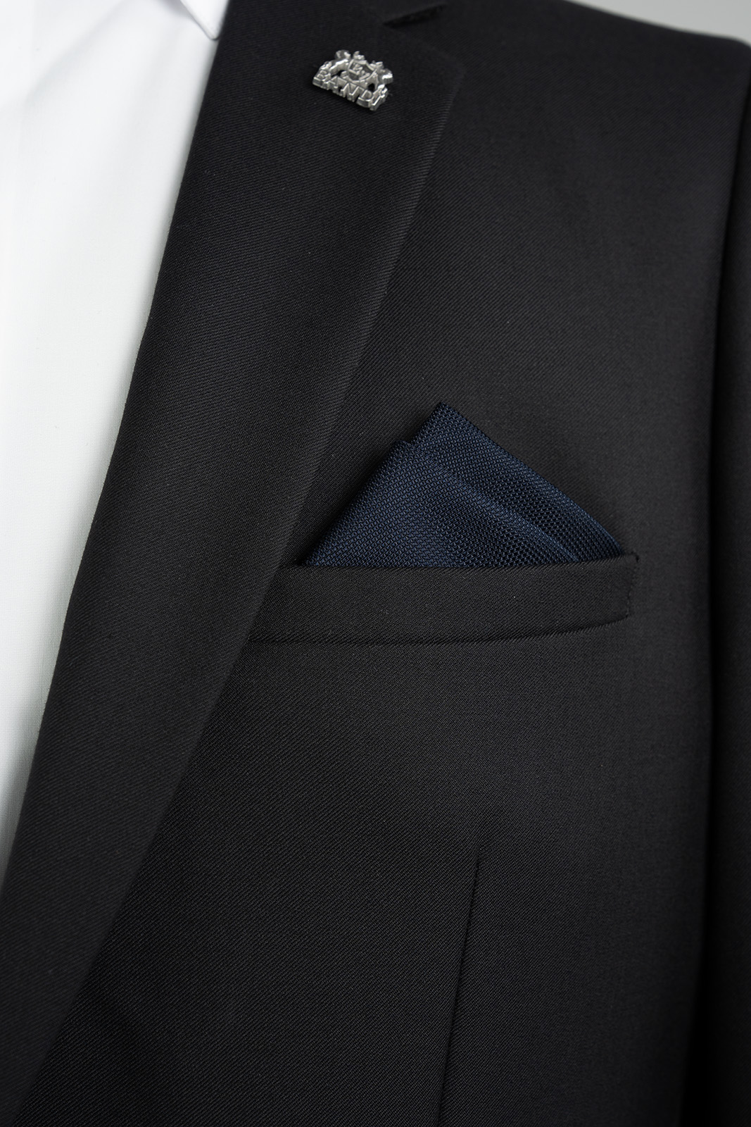Tmavě modrý kapesníček doporučujeme kombinovat s kravatou BANDI v podobném odstínu nebo s kontrastní kravatou v bordó či šedé barvě.
