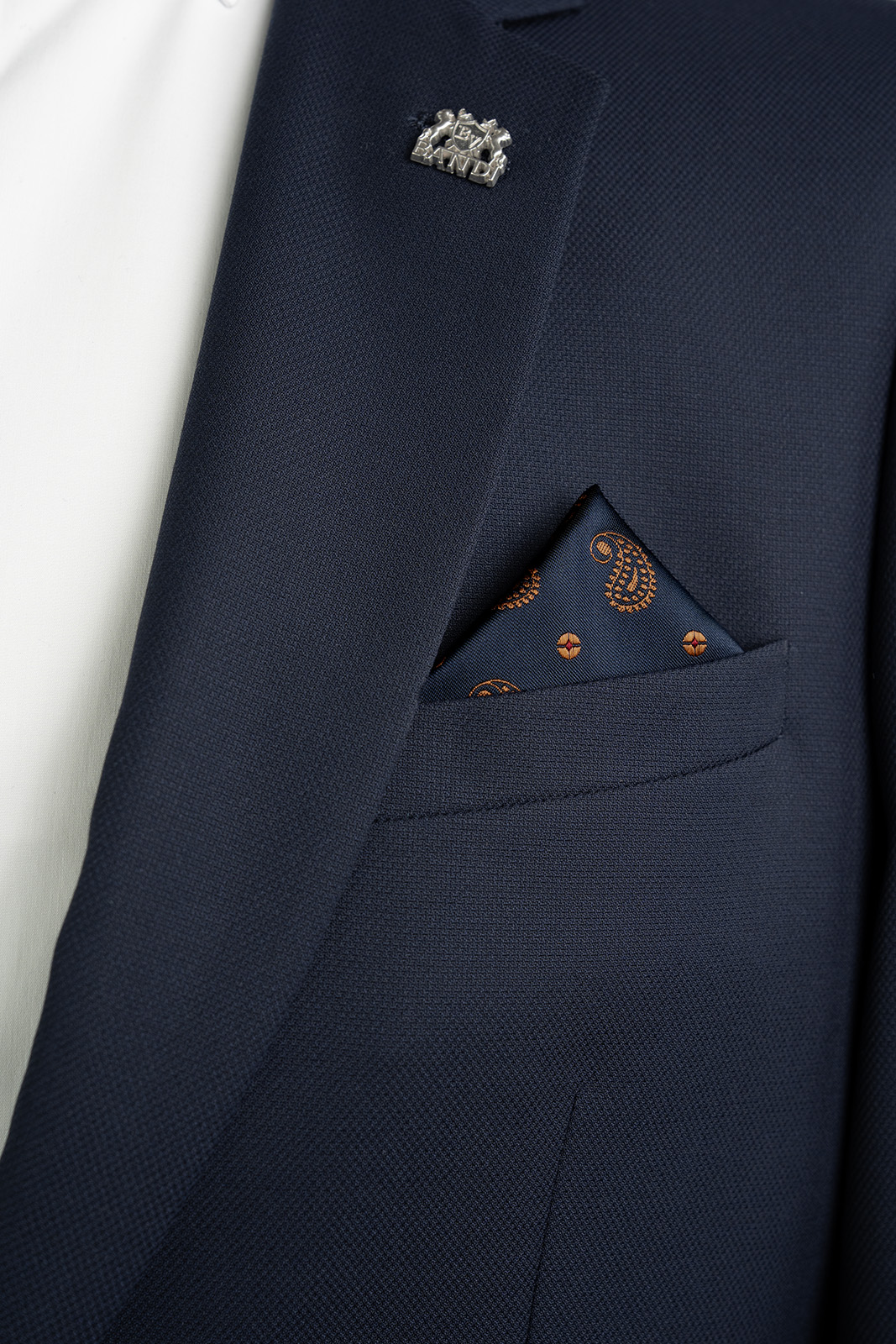 Dolaďte svůj outfit do posledního detailu stylovým pánským kapesníčkem, který zaujme na první pohled. Model BANDI LORIEN 02 v tmavě modrém odstínu s jemným paisley vzorem v teplém tónu působí elegantně a nadčasově.