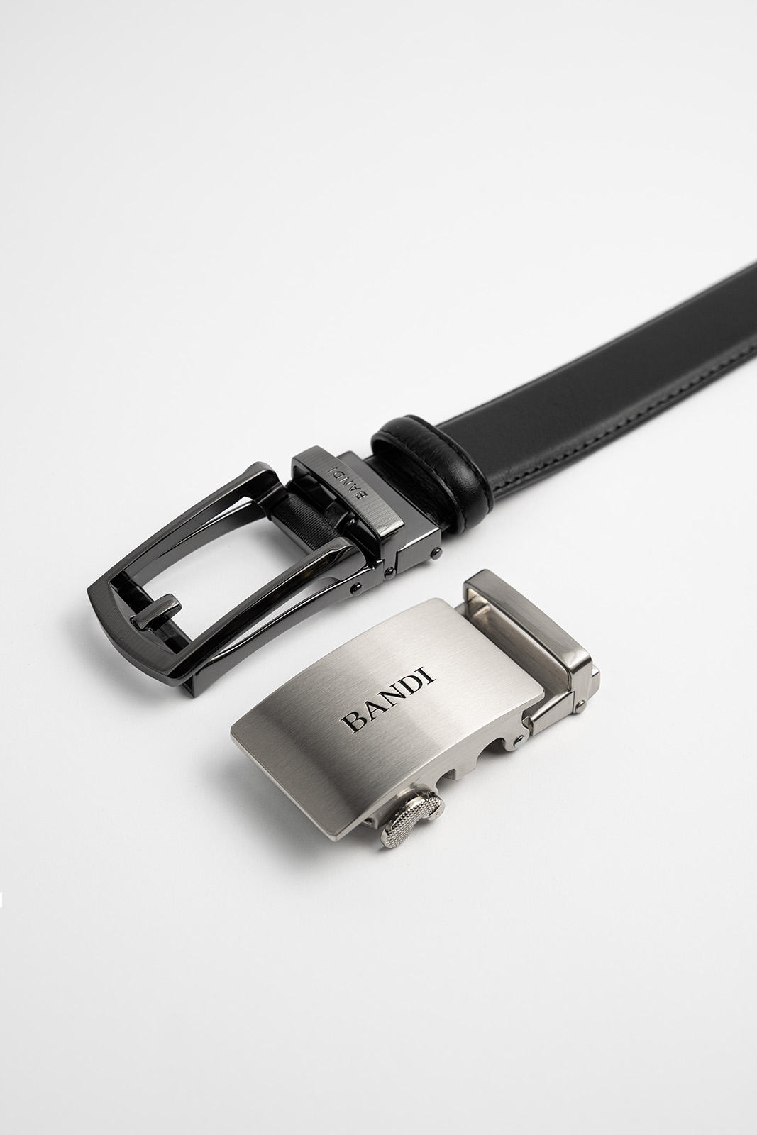 Exkluzivní sada nabízí dvě stylové spony pro všechny události. Pro formální příležitosti zvolte elegantní sponu inspirovanou vzhledem klasické trnové přezky, která ladí s oblekem nebo sakem. Druhá spona s decentním logem BANDI pak působí moderně a je skvělou volbou k Business Casual kombinacím či ležérnějším outfitům.